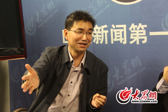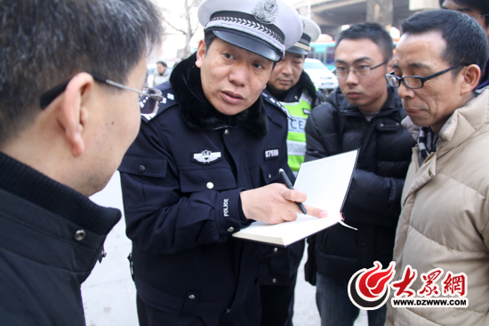 濟南市市中區交警大隊大隊長段富勇向委員和網友代表介紹“治堵”經驗。