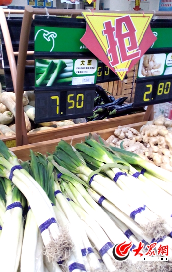 蔥販子層層加價,地頭批發(fā)七八毛一斤的大蔥,到了超市要賣到七八塊。(記者 王宗陽 攝)