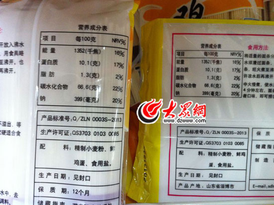 配料表顯示:兩種面條沒差別。