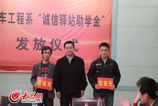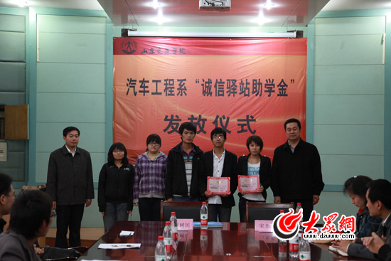10月26日下午3:00,在山東交通學院汽車博物館內,該校汽車工程系一場特殊的“誠信驛站助學金”發放儀式在這里舉行,提供助學金的不是大型企業,也不是機關單位,而是該系5名普通的大學生組成的“誠信愛心團隊”,而1000元助學金來自于他們在校內開設的一個叫“...