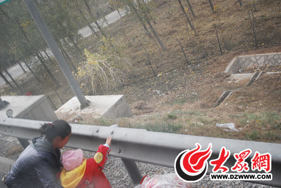 家長不顧危險抱著孩子在高速路上下車