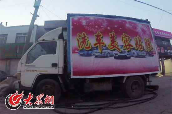 另外5家“黑加油站”之一,就在前文所述的“黑加油站”的斜對面,以一家洗車店作為偽裝。店外停著一輛帶有集裝箱的小貨車,上面貼著兩個大大的字“洗車”。在外人看來,這分明就是一輛為洗車做戶外廣告的小貨車,根本不會想到,這居然就是一家非法加油站。