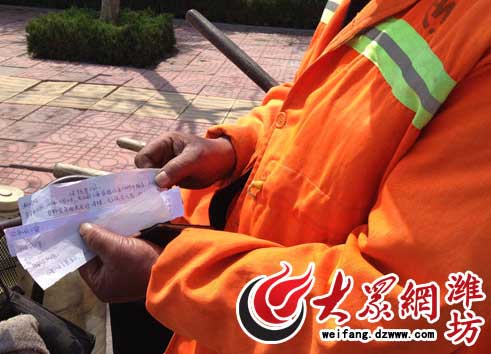 濰坊寒亭欠環衛工半年工資未發 工資打"白條"