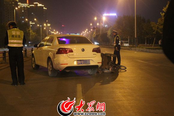 趙先生向大眾網記者回憶了事發時的情況。他說,10月25日晚7時許,他開車帶著妻兒沿菏澤市區人民路由北向南行駛至雙河立交橋,突然,從右側的橋上沖下了一輛三輪車,當時三輪車車速很快,騎車的是個老人,他已經掌控不了車把了。趙先生說,他趕緊向左側打方向盤避讓,但老人還是摔倒在車子右側,他下車查看時,嗅到老人身上有濃重的酒味。