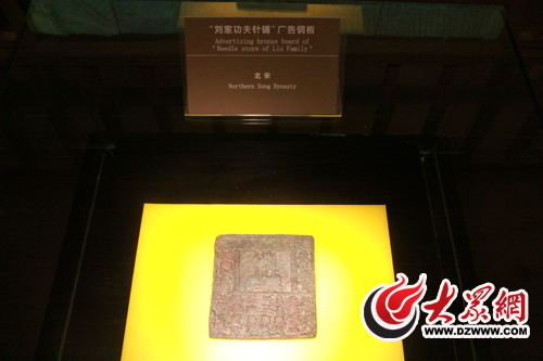 “我們現在展覽的是銅板的復制品,文物的原件現在藏于北京的中國歷史博物館。”濟南市博物館李館長對記者說,現在在濟南市博物館的二樓,的確有一個北宋“濟南劉家功夫針鋪”的廣告銅印版的展位,這個廣告銅板主要是用作展現濟南古代商業文化的一個歷史物證對外進行展覽。