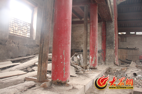 大眾網(wǎng)濟(jì)南4月17日訊(記者 李兆輝)“題壁堂,若不搶救維修,危在旦夕。”今天,有網(wǎng)友在大眾論壇上發(fā)布帖文和照片,呼吁相關(guān)部門“搶修”這座全省最大的古戲樓,因?yàn)樗瑫r(shí)也是濟(jì)南市首批文物保護(hù)單位。今天,大眾網(wǎng)記者探訪這座“受傷”的古建筑發(fā)現(xiàn),由于疏于保護(hù),這座具有較高建筑藝術(shù)價(jià)值的210年的古建筑已變成了“廢品站”。