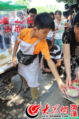 大眾網菏澤6月25日訊(記者 李強)6月23日,一則網貼讓單縣13歲的“涼皮弟”王書陽受到全國網友的關注。由于母親智障、父親偏癱,王書陽不得不輟學,一邊在醫院照顧父親,一邊在街頭賣涼皮養家糊口。王書陽的不幸和堅強感動了單縣,很多愛心人士紛紛前來照顧他的“生意”。