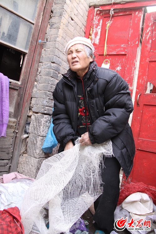 孫法菊老人穿上了好心人送的羽絨服,從老年公寓回到窩棚處理最后的廢品.jpg