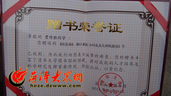 離別前,賈作勝將部分書籍贈送給清華大學圖書館