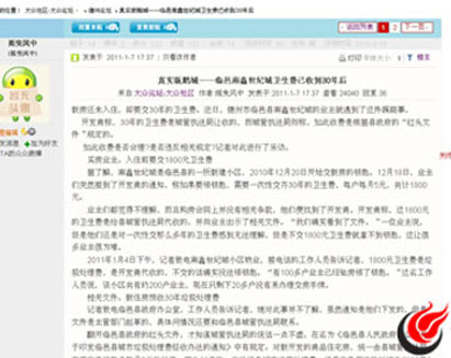 新房還未入住,竟要先交30年衛(wèi)生費?近日,一位網(wǎng)友在大眾論壇發(fā)帖稱,德州市臨邑縣南鑫世紀(jì)城按照縣政府的“紅頭文件”規(guī)定,向業(yè)主預(yù)收30年的衛(wèi)生費,...