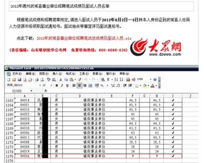 近日,有網(wǎng)友在大眾論壇爆料稱,德州市武城縣2012年事業(yè)單位招聘筆試總成績及面試人員公布,其中,一位考生以9分的筆試成績進(jìn)入了面試環(huán)節(jié)。武城縣事業(yè)編...