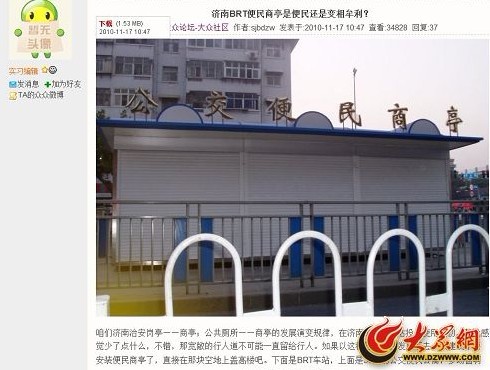 為解決市民出行問題,濟(jì)南把主干道最重要的兩條車道拿出來專供BRT使用。然而,最近有網(wǎng)友發(fā)現(xiàn),全體市民“讓給”BRT的道路卻被公交公司拿來經(jīng)商了,一個個商...