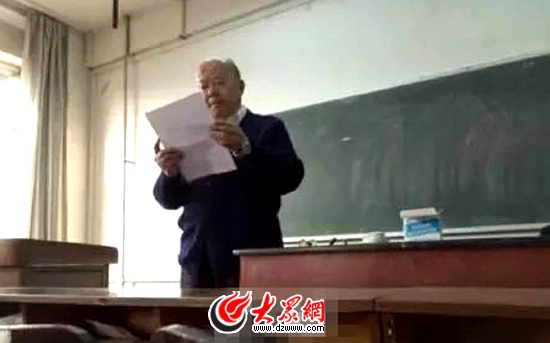 “教授向?qū)W生自我檢討,我們從來沒有遇見過!”山東師范大學(xué)比較文學(xué)與世界文學(xué)專業(yè)2015級(jí)研究生胡燕說,就算王教授不說什么,也不會(huì)有人怪罪他。然而他卻鄭重其事地向同學(xué)們道歉,使得同學(xué)們震驚、感動(dòng),更有種對(duì)老教授的崇敬。