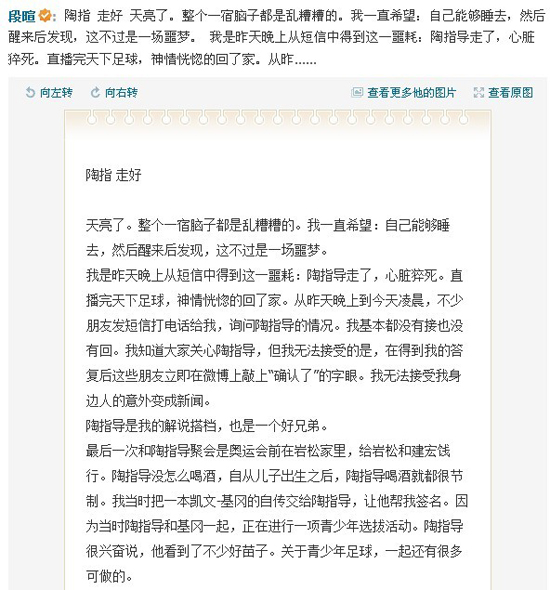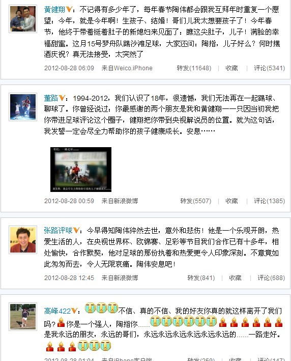 前日凌晨最后一次解說(shuō)德甲 陶偉好友微博哀悼