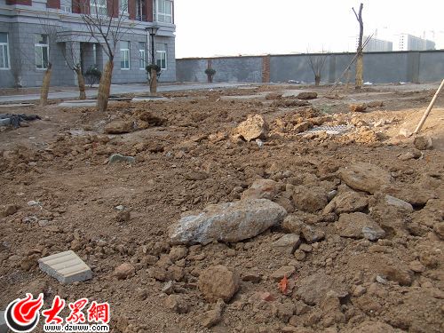綠化無從談起,裸露的泥土中摻有不少的建筑廢料