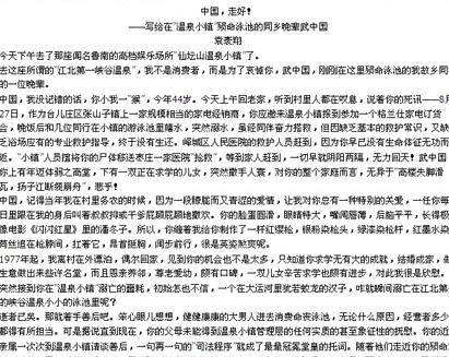 8月27日晚8時許,棗莊市臺兒莊區張山子鎮私營業主武中國在棗莊仙壇山溫泉小鎮旅游度假酒店(下稱“溫泉小鎮”)的泳池內不幸溺亡。8月31日,大眾論壇內名為“...