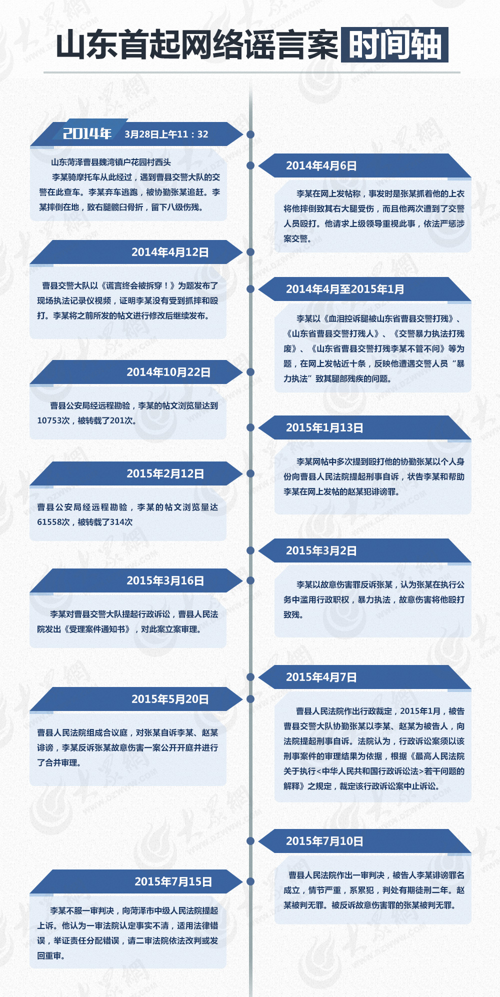2015年7月10日,山東菏澤曹縣人民法院一審宣判,以誹謗罪判處被告人李某有期徒刑二年。