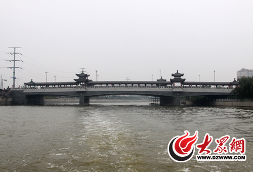 “你坐在船上看風(fēng)景,看風(fēng)景的人在岸上看你!苯裉焓缀降牡谝欢问菑暮閳@節(jié)制閘碼頭到板橋廣場(chǎng)碼頭,雖然只有不到4公里的距離,航程也只有短短的三十分鐘,但來(lái)到小清河邊觀看試通航的民眾卻著實(shí)不少。首航的游船每當(dāng)經(jīng)過(guò)一座橫跨兩岸的大橋時(shí),都會(huì)鳴起一聲長(zhǎng)長(zhǎng)的汽笛,而每每到這個(gè)時(shí)刻便會(huì)引來(lái)兩岸群眾的陣陣歡呼。