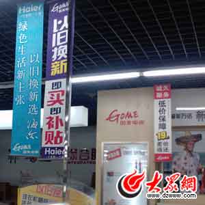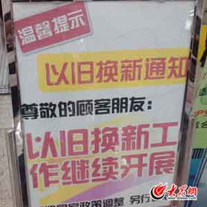 在泉城路一家家電連鎖賣場,記者看到賣場顯眼位置擺放著一塊宣傳板,上面寫著以舊換新工作將會(huì)繼續(xù)開展幾個(gè)大字,而在該商場的彩電、冰箱、空調(diào)、洗衣機(jī)等銷售區(qū)域,以舊換新政策的宣傳條幅隨處可見,記者詢問銷售人員得知,這些橫幅確實(shí)是一直懸掛在這里,從未撤掉。... ...