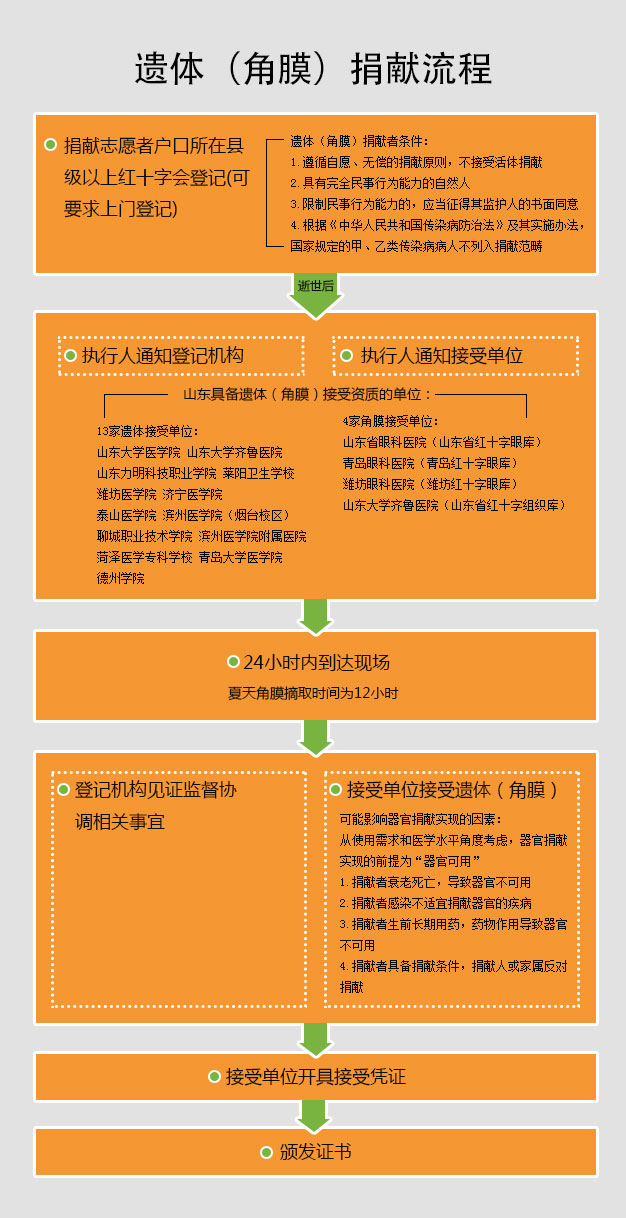 4月10日,在山東省紅十字會,大眾網記者采訪了山東省紅十字會遺體(角膜)捐獻工作負責人趙娜,她介紹說,很多人雖然簽訂了《山東省遺體(角膜)捐獻申請登記表》或者《中國人體器官捐獻自愿書》,但是簽字之后,感染上了一些比較嚴重的傳染疾病,過世后就可能無法捐獻,來自捐獻者本人、捐獻執行人等的一些主觀因素也影響著捐獻的實現。