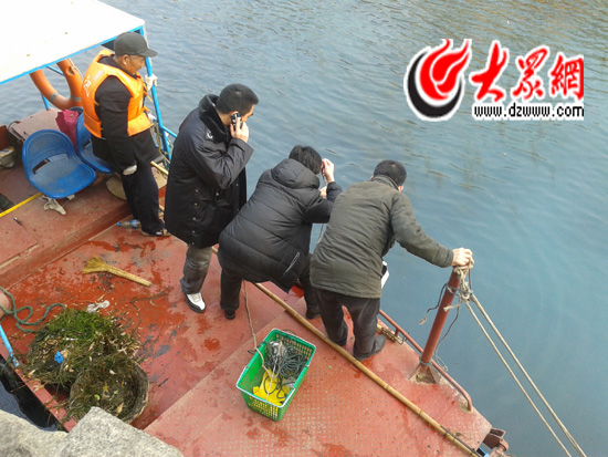 歷下區環保局工作人員正在護城河被污染區域采集水樣。大眾網記者 李兆輝 攝