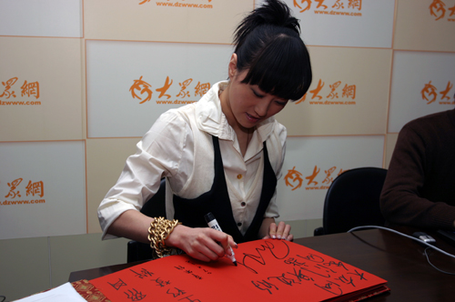 王冰洋作客大眾網,向大眾網網友問好并祝大眾網友天天快樂