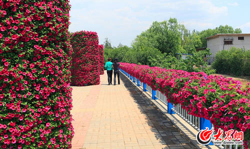工作人員還對經十西路兩側綠地進行整理、鋪種移植等,栽植地被小龍柏、金葉女貞以及月季、薔薇、冬青球等。經七路口、大金路口等4處節點也通過營造地形、大樹組景、配置景石、景松、花卉布置等園林手法,營造了沿線富麗祥和的園林新亮點。各節點的花卉布置獨具匠心。臘山立交、興濟河、臘山河三處橋體懸掛的花箱,扎制的花柱、花缽、花球、花樹增添了喜慶的氣氛。大型花卉立體造型也賺足了大家的眼球,陽光新路路口《魅力槐蔭》、槐苑廣場《五彩生活》、興濟河橋《幸福槐蔭》、臘山河橋《喜慶連連》、擔山綠地《風馳電掣》五組造型形成經十路連接有序、熱烈喜慶的花海氣息。