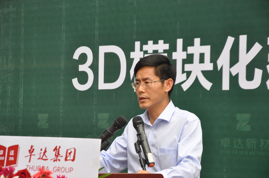 現場,原山東省抓方城鄉建設廳總經濟師金正軍、山東省房地產協會秘書長沈大善、濟南市科學技術協會學會部部長李武、濟南土木建筑學會秘書長宗偉華、濟南市勘察設計行業協會秘書長陳文博、以及卓達集團副總裁兼華東大區董事長譚步勇、卓達山東集團副總裁李朝陽共同宣布活動開啟。開啟儀式上,金正軍表示:“卓達集團創新研發的3D模塊化住宅產業新技術是值得推廣的,是應該在住宅建設中付諸實踐的。“再過段時間,‘搭積木’式建房便會廣泛出現在我們身邊。”