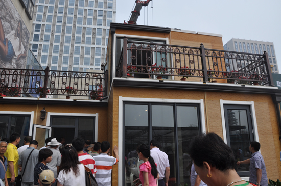 “組裝汽車就是一個零件一個零件地放置、搭配,使用新型建材模塊化建造房子也是一樣的道理,所以,我們是像造汽車一樣建造房子。”這位負責人說。當天,沒有以往施工所常用的水、沙石和水泥,只有積木一樣的房屋模塊。慕名而來的包括濟南本地的全國各地房企、建筑公司、建材公司、裝飾公司經理,以及廣大市民,一起見證了這一過程:上午9點,裝配施工正式啟動。建筑工人們操作著起重機、對講機,陸續吊起各個模塊,一樓客廳、臥室、廚房、衛生間首先被安裝好,隨后開始拼裝二層觀景露臺、臥室和多功能房。不到3個小時,順利建成了整幢二層別墅。