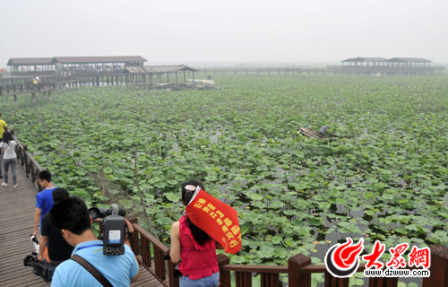 大眾網(wǎng)濟(jì)寧6月18日訊(見習(xí)記者 尹海洋) 18日上午,“全國(guó)網(wǎng)絡(luò)媒體山東紅色老區(qū)行”采訪團(tuán)在經(jīng)過三個(gè)小時(shí)的車程后,到達(dá)濟(jì)寧市微山縣。記者看到,靠“紅色旅游”享譽(yù)全國(guó)的微山縣又打出“生態(tài)”牌,微山縣將紅色旅游與生態(tài)建設(shè)相結(jié)合,將建成亞洲最大的濕地公園——微山湖濕地公園。