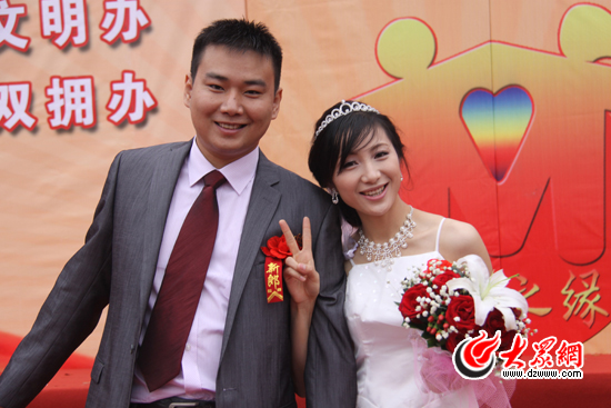 市民武迪、何小鳳是今天婚禮上的60對新人之一,他們向記者表示,之所以選擇用參加集體婚禮的方式步入婚姻殿堂,不僅僅因為集體婚禮簡單、經濟,更因為集體婚禮同樣熱鬧、又有意義。“我們兩人的家都在外地,當初在籌劃婚禮的時候,我們想過如果把兩家的親戚朋友都請來濟南,既耽誤工作,又十分麻煩。”武迪對記者說。“今天的集體婚禮,不僅場面十分熱鬧,我們還向濟南市民發出了《愛心倡議書》,我們覺得今天的婚禮很有意義。”何小鳳對記者說。