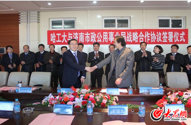 大眾網濟南11月29日訊 (通訊員 周中海 記者 王磊)近年來,濟南市政公用局深入貫徹落實科學發展觀,認真學習學習貫徹十六屆五中全會精神,積極推進科技創新工作,充分發揮科技對城市的保障與支撐作用,市政公用事業保障能力和服務水平不斷提升。為加強與高校在技術研究、成果轉化和人才培養等方面的深入合作,充分發揮雙方在高端人才聚集、產業發展聚集、提升行業創新能力、促進市政公用行業發展方面的作用,從而達到資源共享、優勢互補、共謀發展,2010年11月26日,市市政公用局與哈爾濱工業大學在哈爾濱市簽訂戰略合作協議,在城市道橋、城市飲用水處理、污水處理、城市燃氣和供熱等領域內開展多種形式和多種層次的產、學、研戰略合作。