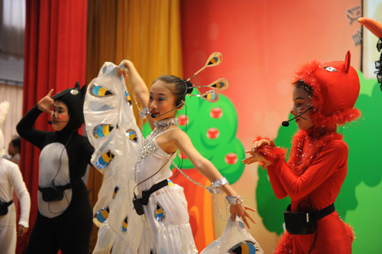 濟(jì)南市文化東路小學(xué)表演的課本劇《驕傲的孔雀》