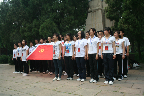 6月16日訊(記者 隋喬 通訊員 高小峻)今天上午,山東建筑大學(xué)商學(xué)院奮進(jìn)08級(jí)學(xué)生黨支部的年青黨員,在解放閣下、在濟(jì)南慘案遺址、在革命先烈王盡美塑像前踏尋歷史足跡,并面對(duì)迎風(fēng)飄揚(yáng)的鮮艷黨旗,莊重的舉起自己的右手,重溫入黨誓詞,唱紅歌,以這種獨(dú)特的方式來紀(jì)念偉大的中國共產(chǎn)黨建黨九十周年。宣誓和合唱完畢后,他們高舉黨旗,胸前掛著黨員工作證,走上泉城路為困難群眾募捐,弘揚(yáng)社會(huì)正氣。山東建筑大學(xué)商學(xué)院黨支部書記胡順泉說,建黨九十周年之際,我們響應(yīng)學(xué)院“以特色活動(dòng)為抓手,扎實(shí)推進(jìn)學(xué)生黨員創(chuàng)先爭優(yōu)活動(dòng)”的號(hào)召,弘揚(yáng)紅色主旋律,創(chuàng)新形式,來到革命遺址,面對(duì)鮮紅的黨旗,面對(duì)革命先烈,唱紅歌,重溫入黨誓詞,旨在增強(qiáng)學(xué)生基層黨組織的凝聚力、影響力和戰(zhàn)斗力,進(jìn)一步激勵(lì)和督促學(xué)生黨員,不管在任何時(shí)候、在任何情況下,不要忘自己對(duì)黨作出的莊嚴(yán)承諾,都要按照入黨誓詞,永葆共產(chǎn)黨員本色,堅(jiān)定共產(chǎn)主義理想信念,始終牢記入黨誓言,在學(xué)習(xí)、生活、工作中充分發(fā)揮黨員的先鋒帶頭作用。
