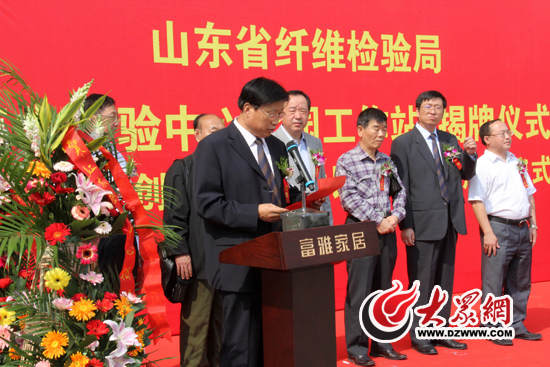 山東纖維檢驗局局長張善軍在揭牌儀式上發(fā)言。