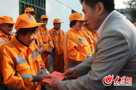 今天上午,歷下區(qū)城管局甸柳環(huán)衛(wèi)所的保潔員尹承剛領到了200元的冬季取暖補助,他的愛人也是甸柳環(huán)衛(wèi)所的一名保潔員,這樣他們兩口子就領到了400元的補助。冬季來臨,為保障堅守崗位的一線環(huán)衛(wèi)工人“溫暖過冬”,歷下區(qū)城管局為全區(qū)1600余名保潔員每人發(fā)放200元的取暖補助、一套冬季作業(yè)棉服和應季蔬菜。