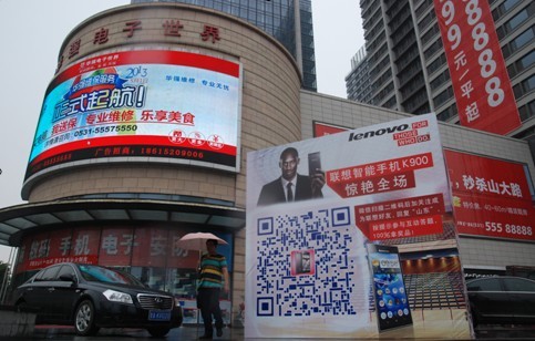 6月20日,聯(lián)想K900巨型二維碼亮相濟南華強,著實吸引了眾人眼球,只要打開微信,掃一掃,100%拿禮品!
