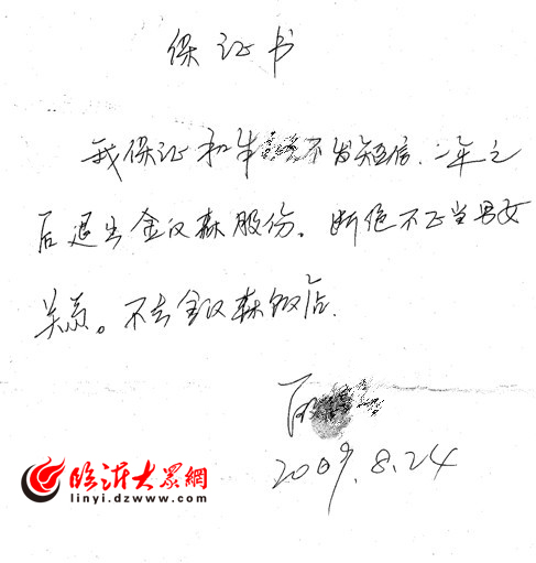 [提要] “我保證和朱xx不發短信,一年之后退出金漢森股份,斷絕不正當男女關系。》的帖子出現在大眾網臨沂論壇,帖子中詳細敘述了當事人的身份及其與“第三者”的關系,帖子圖文并茂,一經發布引發了網友們的廣泛關注。