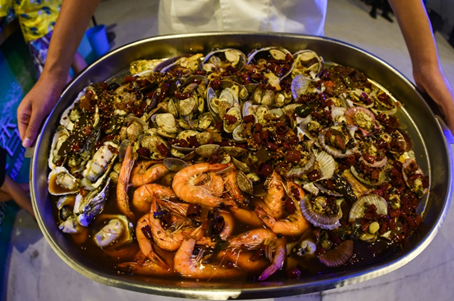 當然還要有青島本土飲食特色:烤肉、烤海鮮、獨家秘制啤酒燒烤、啤酒炸魷魚、青島特色蛤蜊、烤羊腿……美美咬上一口,外焦里嫩,各種味道恰到好處地刺激著口腔,一種說不出的美妙,再來一扎正宗的青島啤酒,一飲而盡,真是過癮,非常帶勁兒。