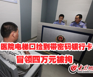 醫院電梯口撿到帶密碼銀行卡 冒領四萬元被拘
