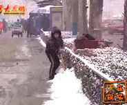 8歲男孩扛鐵锨 幫環衛工媽媽掃雪