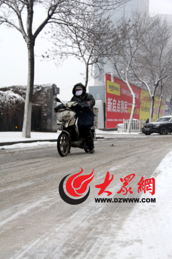 20日凌晨開始的大雪洋洋灑灑,一直持續(xù)到21日早上仍未停止。但經(jīng)過一夜的冰凍,馬路上原本的雪泥已經(jīng)結(jié)成了冰,持續(xù)未停的雪蓋住了冰層,也給出行的市民開了個(gè)大大的玩笑。“我還以為是厚厚的雪不會(huì)太滑,騎車時(shí)才發(fā)現(xiàn),底下是冰,上面是雪,一剎車就打轉(zhuǎn)!很滑!”騎電動(dòng)車從濼源大街行駛的陳先生,雙腳擦著地,歪歪扭扭地前行。