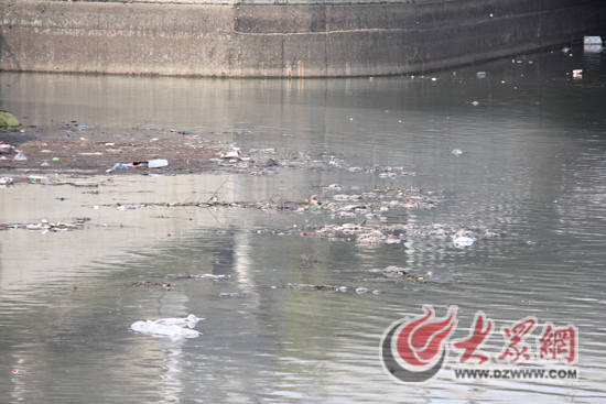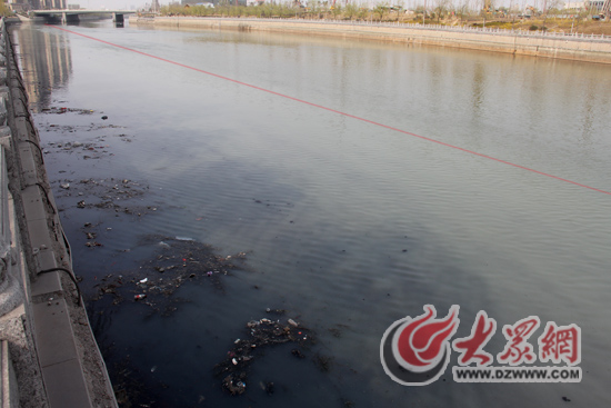 而由于污水的排入,自黃臺板橋向東以河道中線為界,小清河已變成了白、綠兩色,靠北岸的河水仍為綠色,靠南岸的河水則被污水染成了奶白色,大量的生活垃圾和黑色污塊漂浮在水中,陣陣腥臭彌漫在河兩岸。從岸邊望去,整條小清河呈現出“涇渭分明”的景象,原先滿是休閑人群的河岸如今已不見人影。