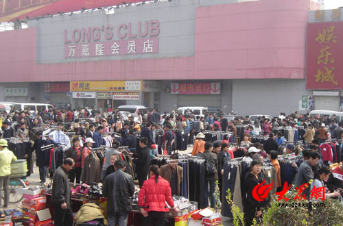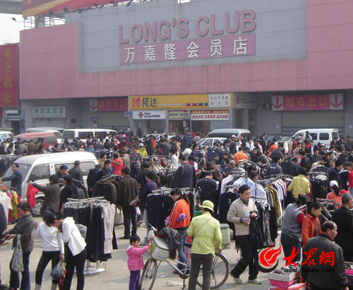 大眾網(wǎng)濟(jì)南4月5日訊(實(shí)習(xí)生 司君波)“便宜了,原價(jià)258元的皮包現(xiàn)在只賣(mài)100元”。萬(wàn)嘉隆突然關(guān)門(mén),閃了不少供應(yīng)商和員工,很多超市的銷(xiāo)售商無(wú)奈在廣場(chǎng)上擺起地?cái)偅蛘厶幚砩唐贰?BR> 4月5日上午,萬(wàn)嘉隆超市門(mén)前廣場(chǎng)上人頭攢動(dòng),很多顧客都在搶購(gòu)超市打折商品。記者在現(xiàn)場(chǎng)看到,地?cái)偵系纳唐贩N類(lèi)繁雜,T恤、羽絨服、上衣、褲子、鞋子、皮包、廚具、兒童玩具等應(yīng)有盡有。一位賣(mài)T恤的王大爺告訴記者:“這些都是萬(wàn)嘉隆的貨”,說(shuō)著還指著萬(wàn)嘉隆的標(biāo)簽給記者看:“今天早晨三點(diǎn)我們剛剛把貨提出來(lái),貨總不能壓在自己手里,只能賠錢(qián)賣(mài),現(xiàn)在連本都保不住”。記者看到,現(xiàn)場(chǎng)的東西確實(shí)很便宜,原價(jià)89元的鞋子只要價(jià)40,還有很精致的原價(jià)258元的皮包只賣(mài)100元。“至于超市為什么關(guān)門(mén),我們到現(xiàn)在也搞不明白,前一天還正常營(yíng)業(yè),第二天我們的服務(wù)員就進(jìn)不去了,超市的理由是裝修,但裝修用不著一聲不吭的關(guān)門(mén)啊。”旁邊賣(mài)羽絨服的大哥說(shuō)。