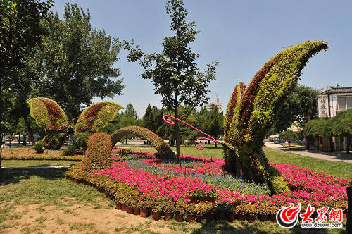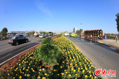 工作人員還對經十西路兩側綠地進行整理、鋪種移植等,栽植地被小龍柏、金葉女貞以及月季、薔薇、冬青球等。經七路口、大金路口等4處節點也通過營造地形、大樹組景、配置景石、景松、花卉布置等園林手法,營造了沿線富麗祥和的園林新亮點。各節點的花卉布置獨具匠心。臘山立交、興濟河、臘山河三處橋體懸掛的花箱,扎制的花柱、花缽、花球、花樹增添了喜慶的氣氛。大型花卉立體造型也賺足了大家的眼球,陽光新路路口《魅力槐蔭》、槐苑廣場《五彩生活》、興濟河橋《幸福槐蔭》、臘山河橋《喜慶連連》、擔山綠地《風馳電掣》五組造型形成經十路連接有序、熱烈喜慶的花海氣息。