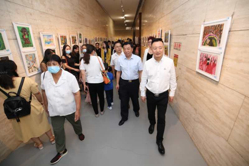 頒獎后,嘉賓們到山東美術館A層藝術助力空間參觀了本次展出的作品,對參展作品給出了高度的贊揚和充分的肯定。透過“友愛”、“環保”、“夢想”為主題的張張作品,觀眾們能充分感受到青少年兒童在尺幅之間傳達真摯熱忱的感情,借大賽平臺宣傳保護環境的意義,用手中的畫筆描繪熠熠生輝的夢想。每一幅作品都記錄了選手們成長過程中對身邊生活的仔細觀察和對未知世界的豐富想象。