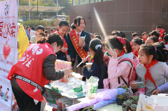 這樣主動奉獻、樂于助人的服務(wù)精神也感染著在場的所有人,在活動過程中,黨員代表和少先隊代表也積極參與到活動志愿服務(wù)中,為活動的順利開展與同學們的安全保駕護航,一個個來來回回的身影,在初冬的校園中格外清晰。一張張清純可愛的笑臉,絢爛了初冬的陽光;一聲聲清脆悅耳的吆喝,撥動了溫暖的琴弦。他們一聲聲稚嫩的叫賣,化為伙伴之間最真誠的問候,每一位逸家學子真誠的付出背后,是一個個小物品凝聚成的一顆顆閃亮的童心。
