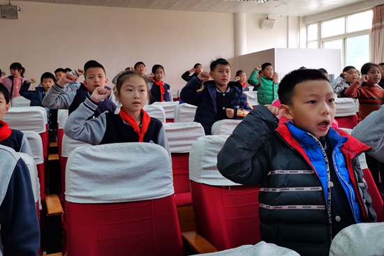 法治課最后,劉警官帶領(lǐng)孩子們一起宣誓,堅(jiān)決向校園暴力說“不”。同學(xué)們?nèi)w起立,莊嚴(yán)宣誓:拒絕暴力,從我做起!