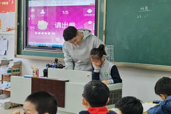 “重視小學階段的AI教育,我們教給隊員的不僅僅是具體的應用算法,更應該是打開未來人工智能這扇科技之門的成功鑰匙。讓隊員更多的去接觸參與,通過學習、認識、分析、解決現實問題等過程,培養隊員對于AI技術的興趣,形成一種親近感,從而提升綜合素質、發展核心素養。”三(一)中隊班主任張旭老師在接受采訪時談到。