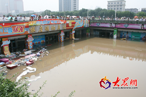 昨晚突襲泉城的特大暴雨,使位于泉城廣場地下的銀座購物廣場成了一片澤國。